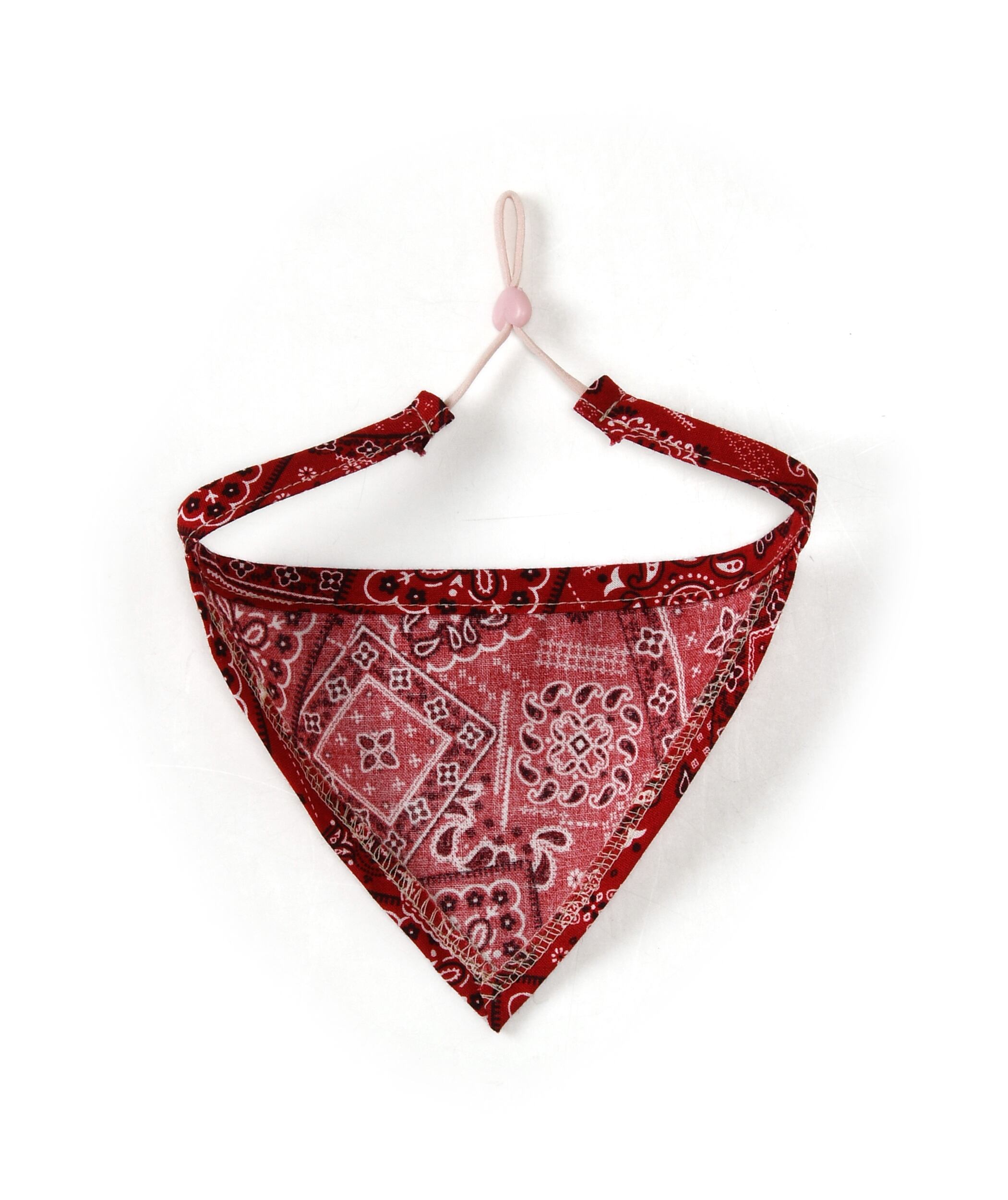 ペイズリー柄の三角巾バンダナタイプのアクセサリー。色はレッドとブルーの2色展開。首元のワンポイントおしゃれにピッタリのワンコ用バンダナです。