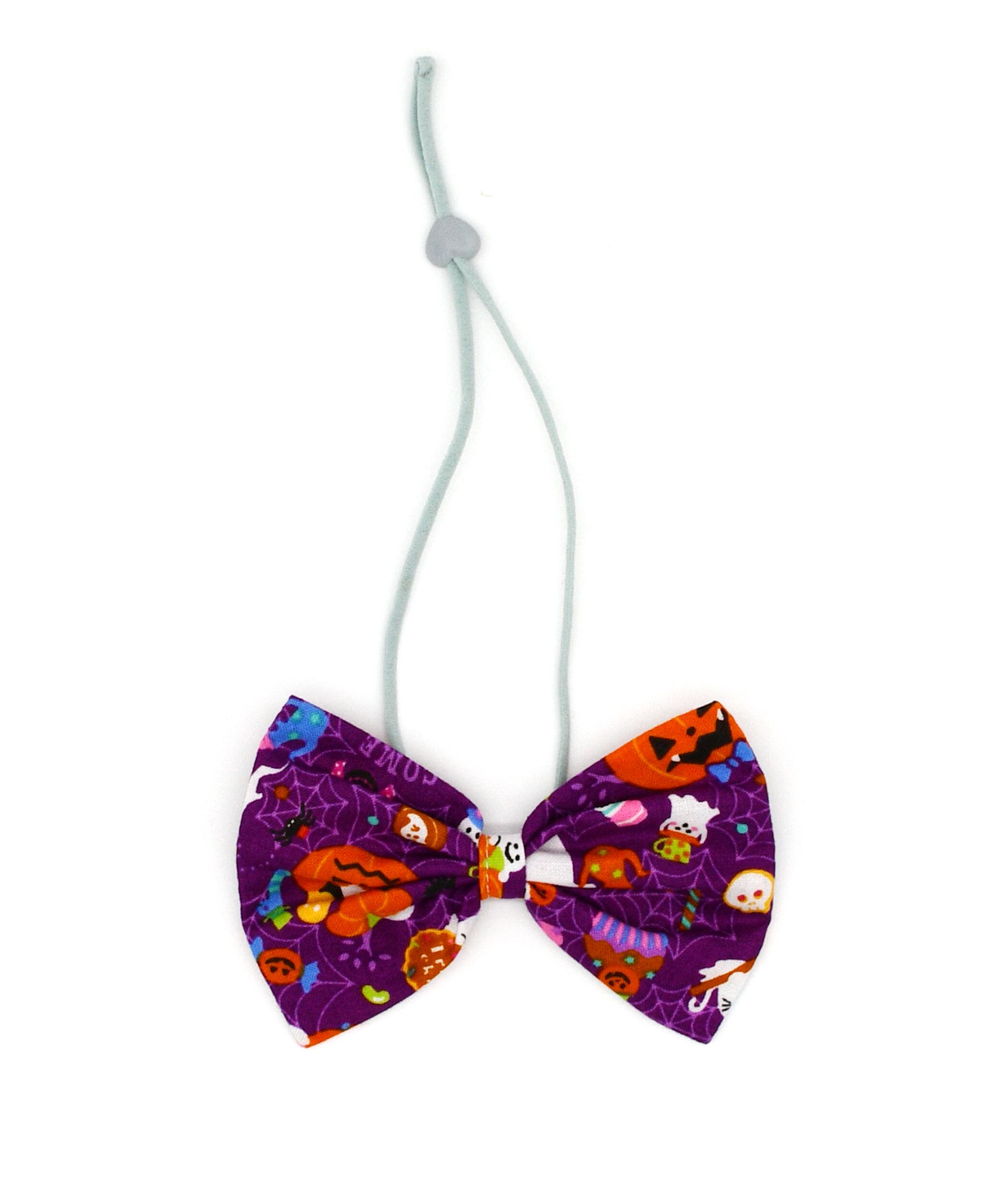 大かぼちゃ柄のリボン/蝶ネクタイタイプのアクセサリー。色はオレンジとパープルの2色展開。首元のワンポイントおしゃれにピッタリのワンコ用リボンです。