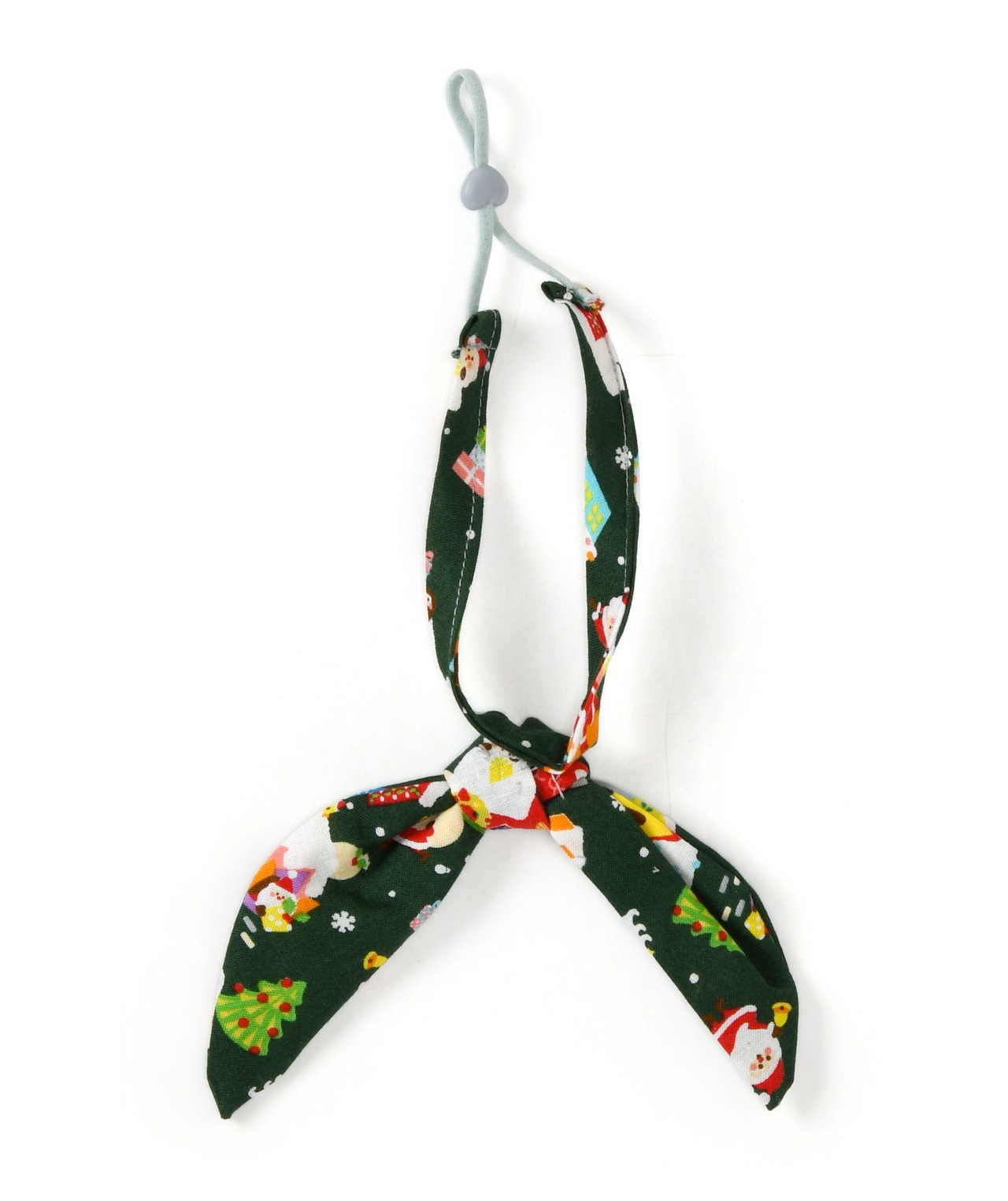 サンタ柄の結びバンダナタイプのアクセサリー。色はレッドとブラックの2色展開。首元のワンポイントおしゃれにピッタリのワンコ用バンダナです。