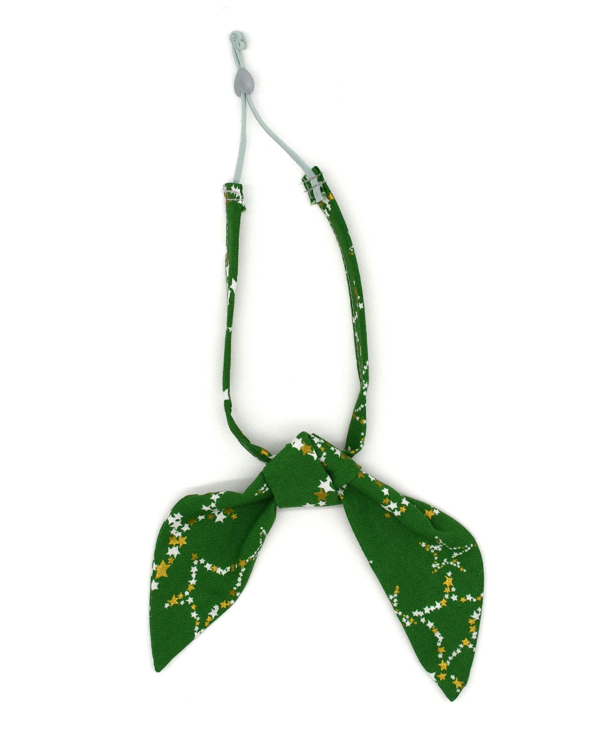 星柄の結びバンダナタイプのアクセサリー。色はレッドとグリーンの2色展開。首元のワンポイントおしゃれにピッタリのワンコ用バンダナです。